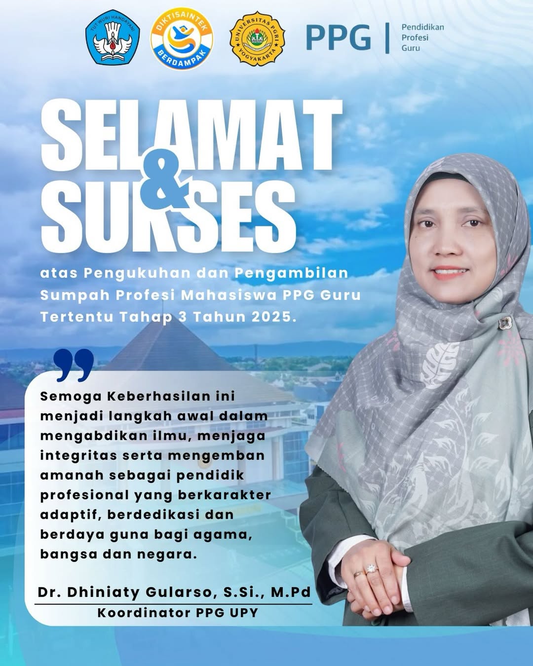 Berita UPY Kukuhkan 1201 Mahasiswa PPG Guru Tertentu Tahap 1 Tahun 2025 sebagai Guru Profesional 27 Oktober 2025 Tidak ada komentar